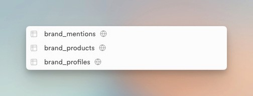 We've indexed 500+ independent watch brands into a single structured database. For each one, two sources are now connected: Instagram and YouTube. Follower counts, average likes over the last 90 days, how many YouTube reviews exist, total view counts — all in one place, all queryable, all comparable. The view is called v_brand_scorecard.